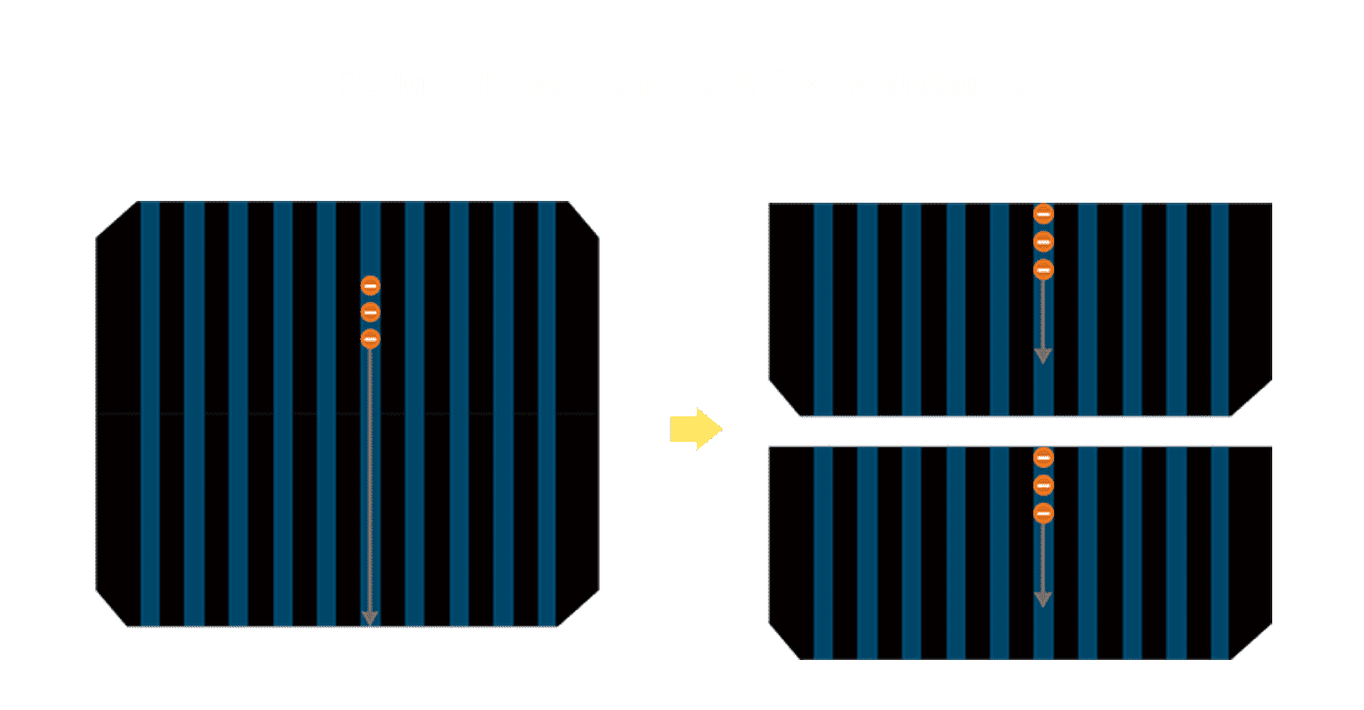 - 多条电极栅结构,,,,可有效降低外力对于电池的影响,,,限制电池隐裂 (Micro-cracks) 范围,,防止电流传输路径 (Current distribution) 之损坏进一步扩大。。。