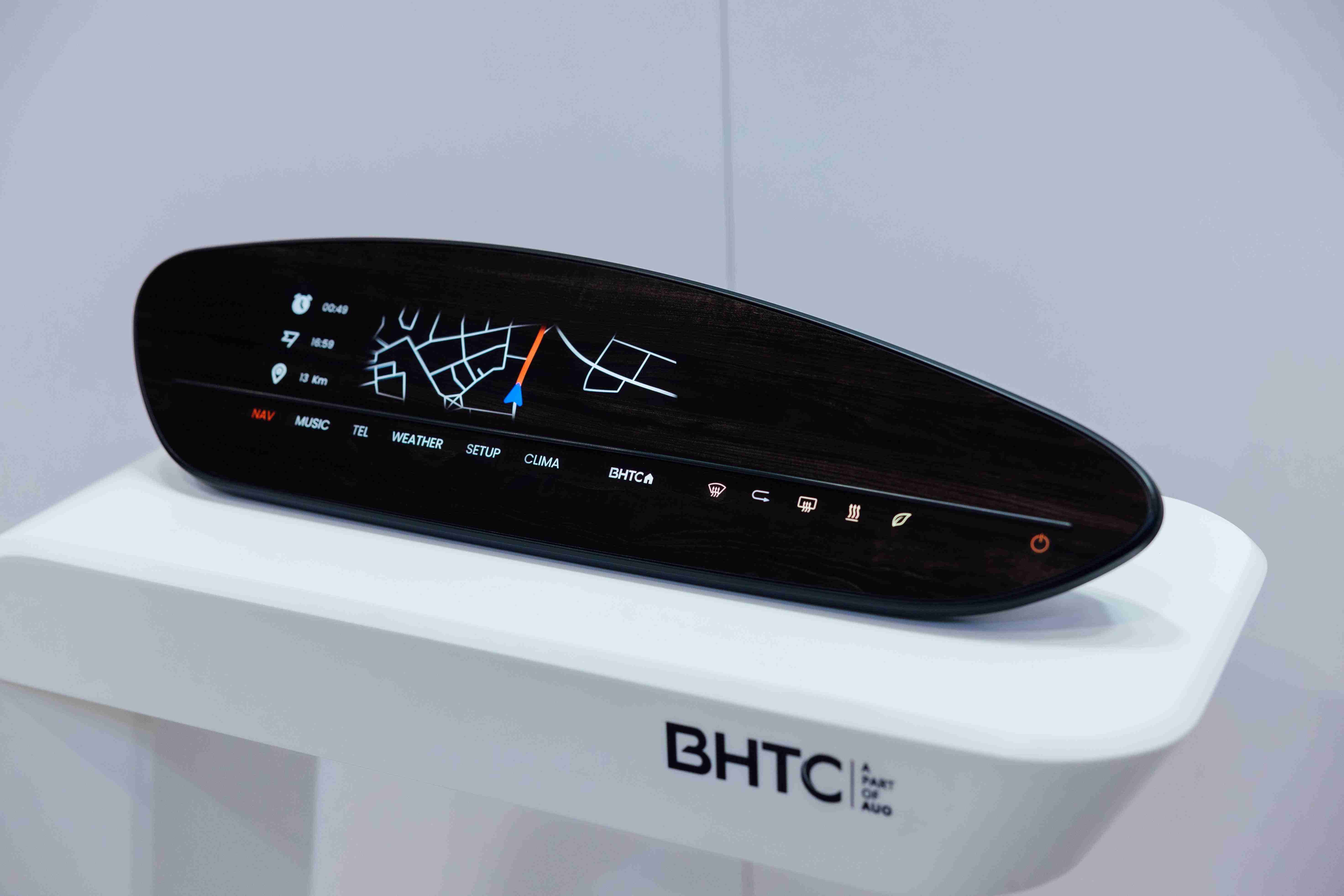BHTC的木纹车用显示器(Display Behind Wood)将无缝木质表面与显示器结合后,,可以融入车内设计中,,提供驾驶优质的视觉效果,,,,加上其无边框的设计和亮度调控,,创造更优质的车内体验。。。。